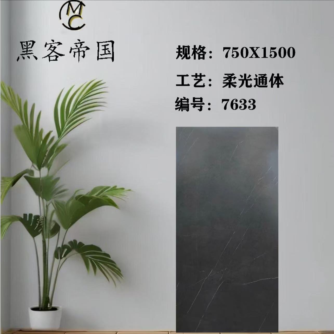 Home » Products » Glazed Matt Tiles » 75x150 cm Dark Color Tiles » 7633 Dark Grey Matt Tiles